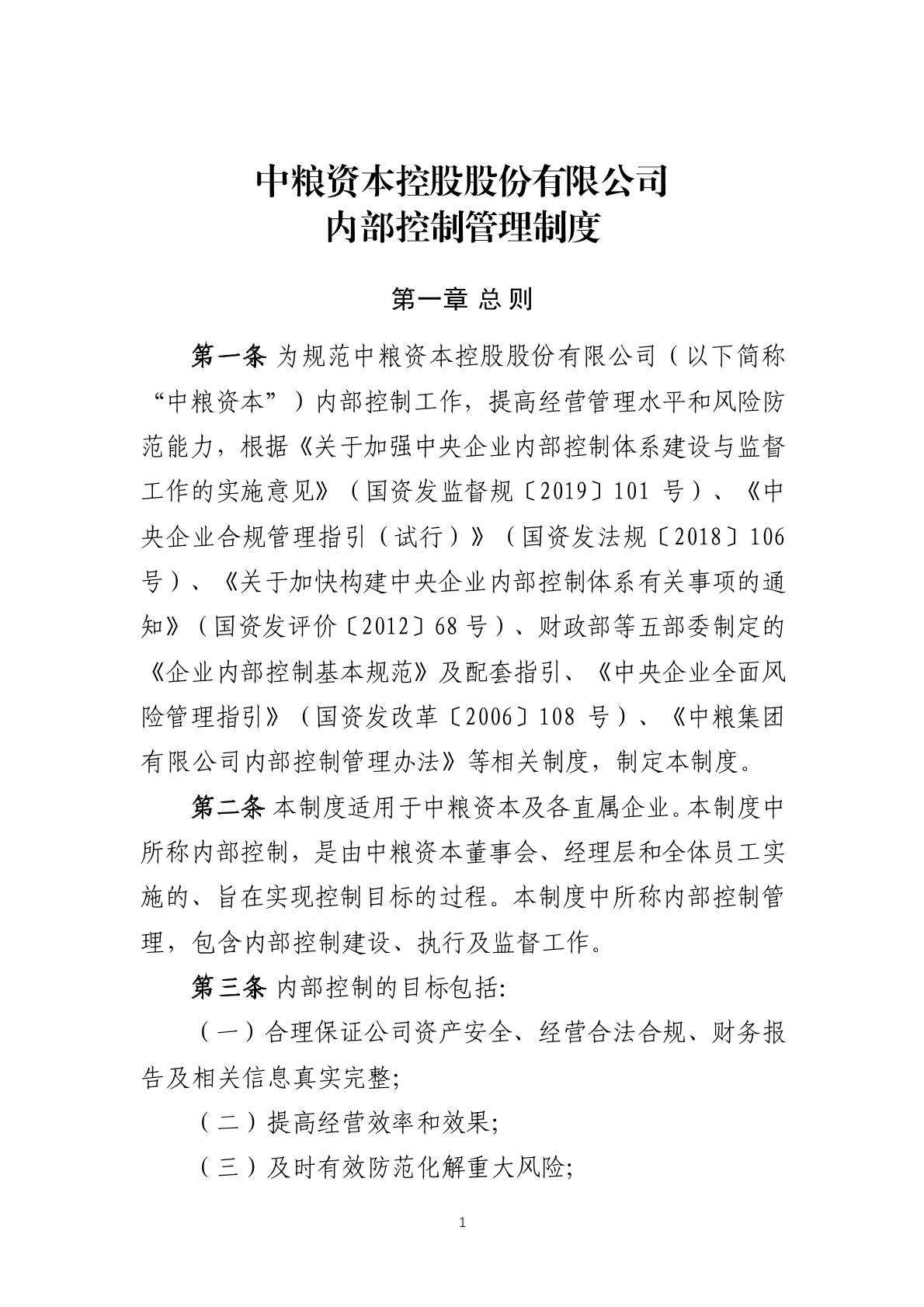 中粮资本控股股份有限公司内部控制管理制度