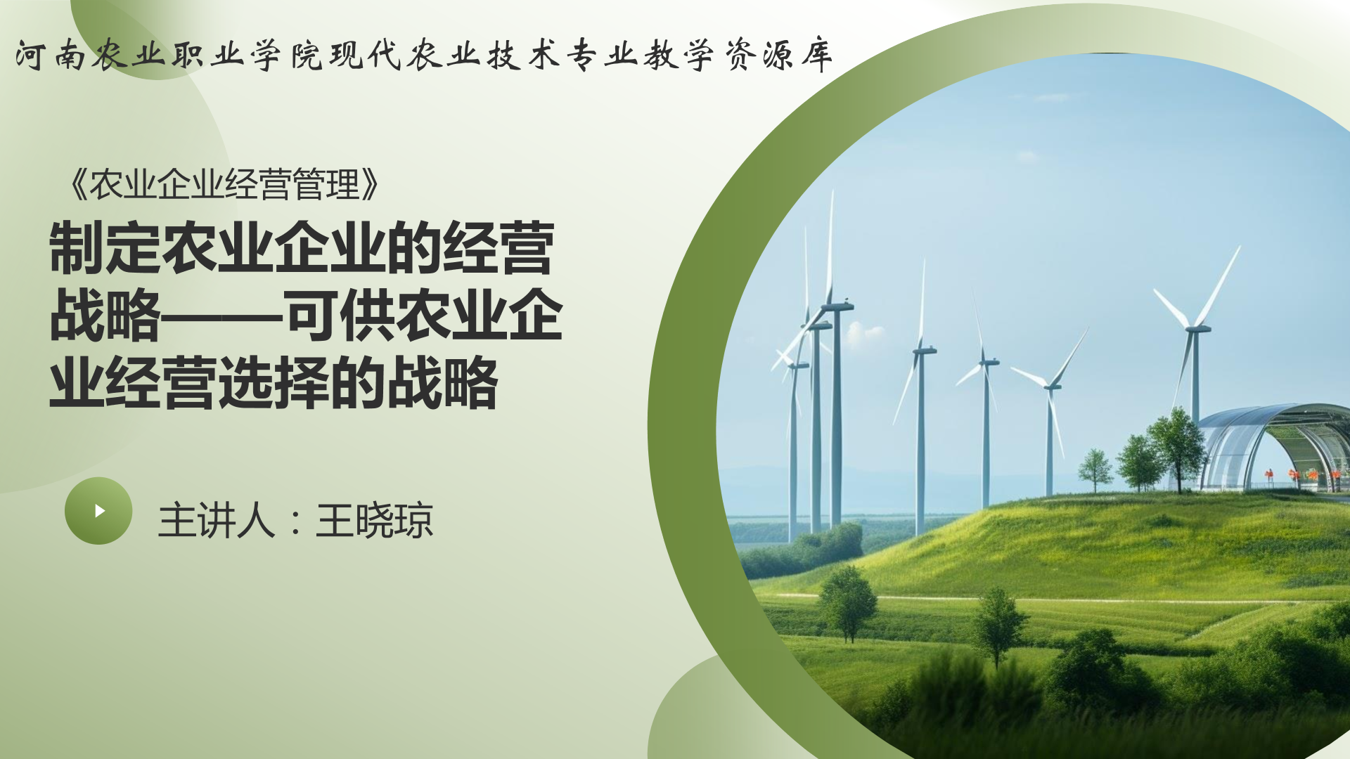 12制定农业企业的经营战略——可供农业企业经营选择的战略