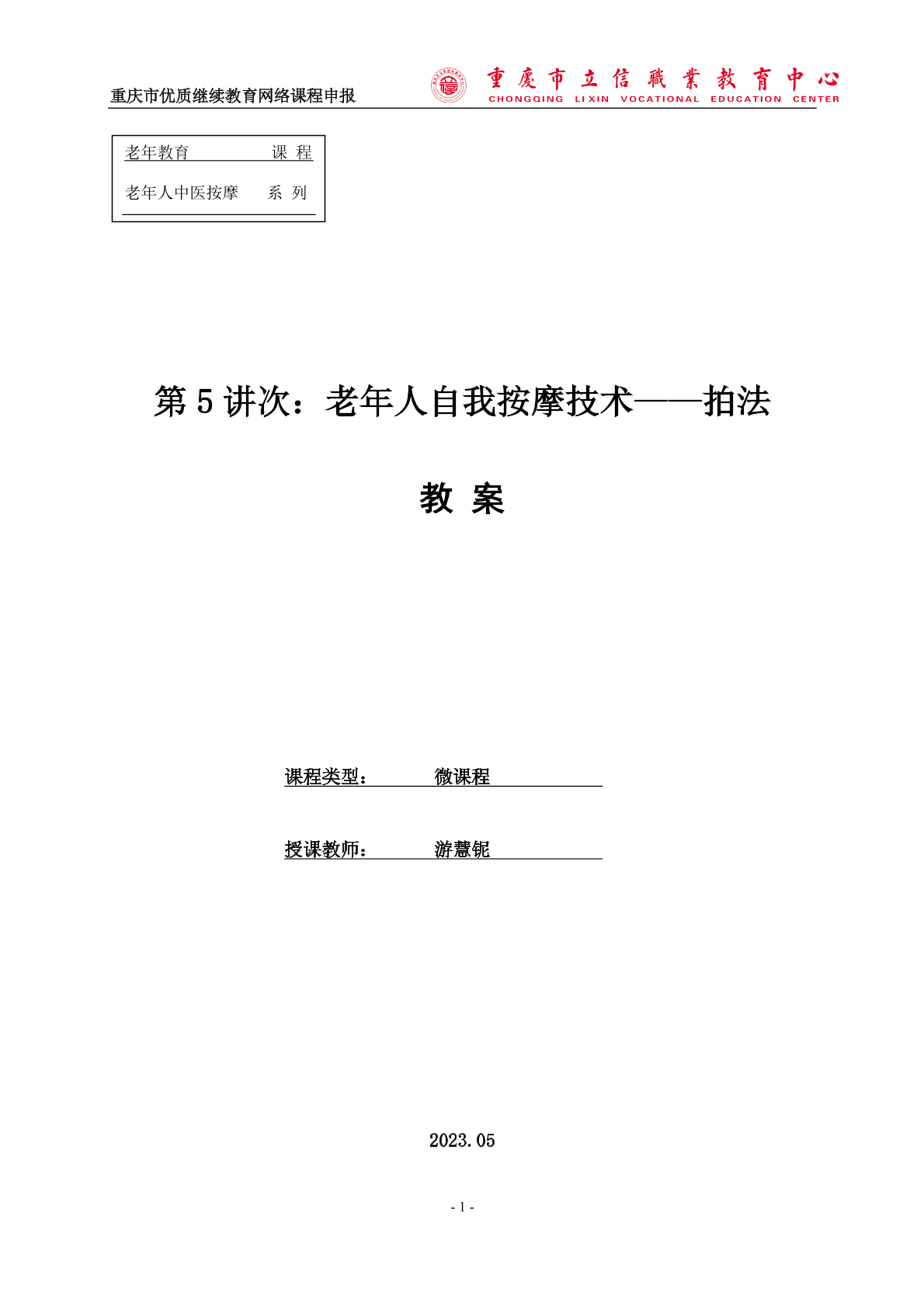 5.老年人自我按摩技术——拍法—教案