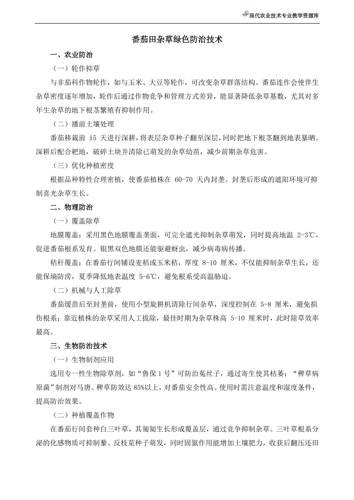 番茄田杂草绿色防治技术