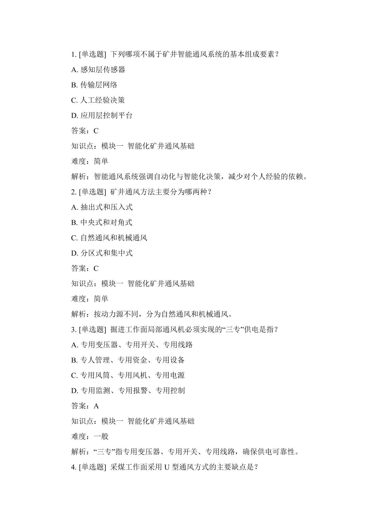 《矿井智能通风》-题库