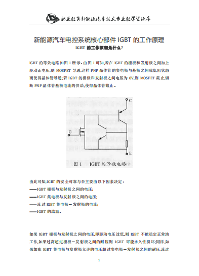 新能源汽车电控系统核心部件IGBT的工作原理