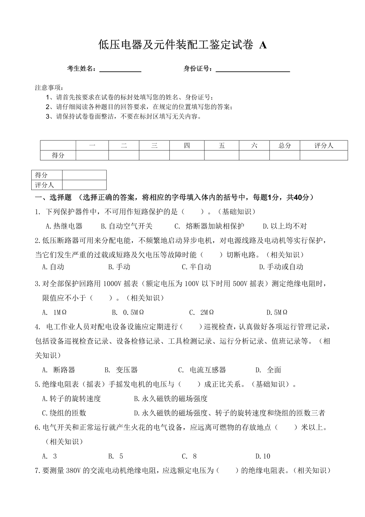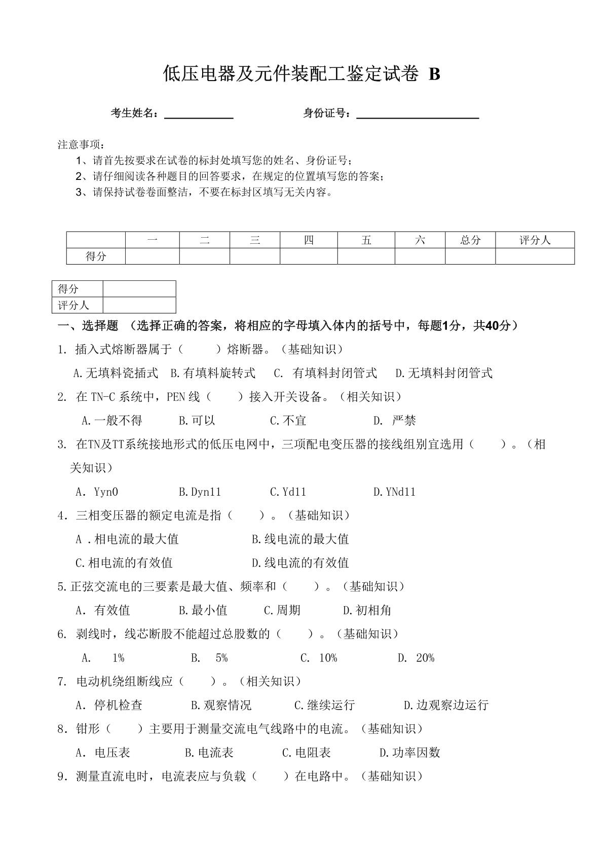 低压电器及元件装配工高级理论试题C卷