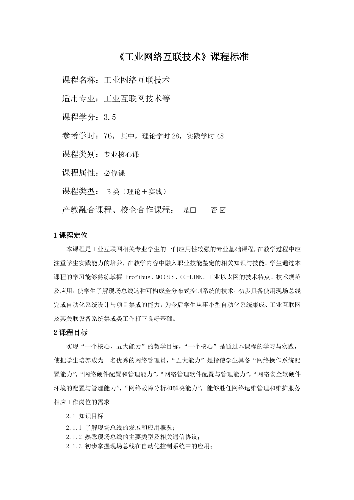 工业网络互联技术-授课计划