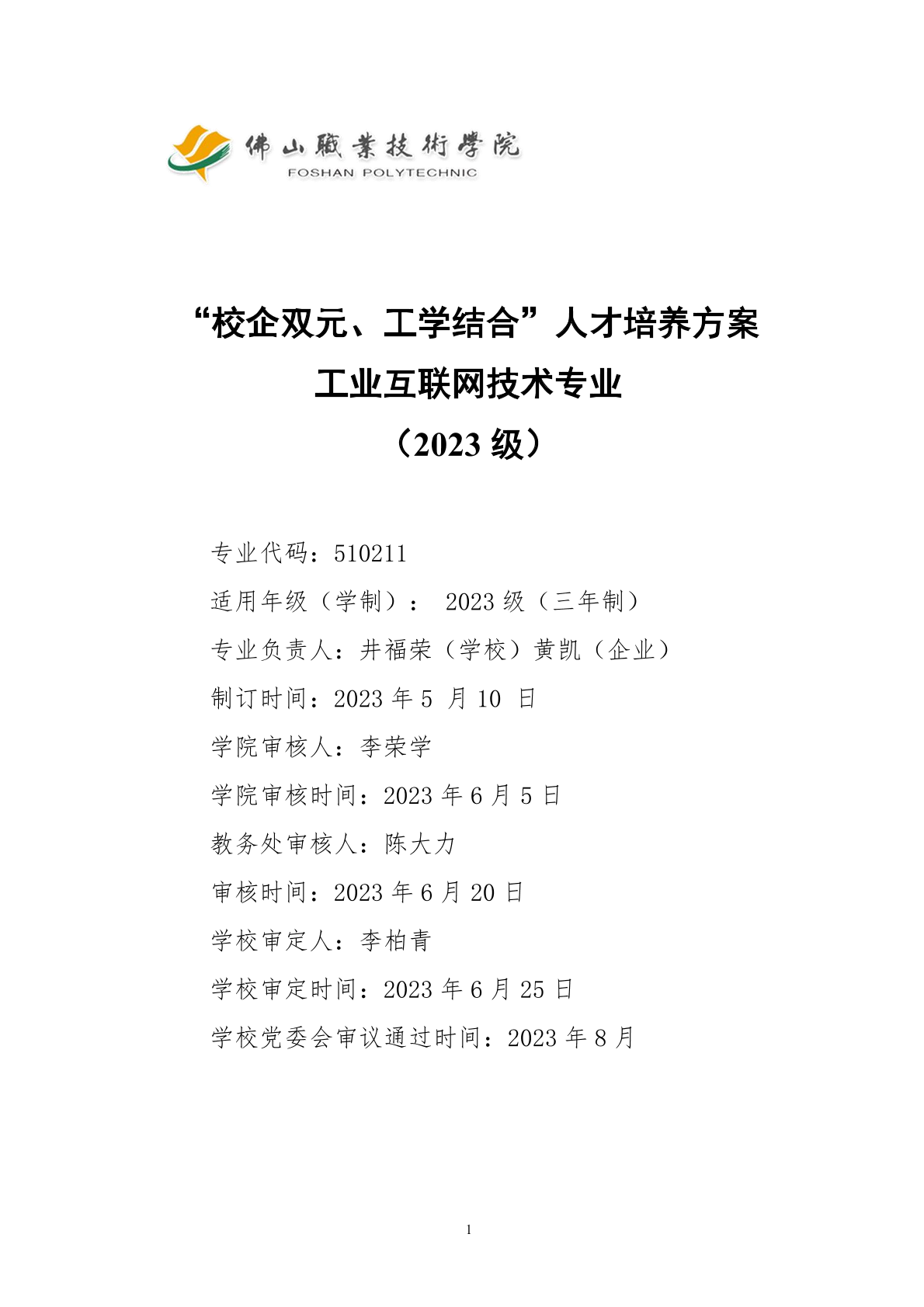佛山职业技术学院2023级工业互联网技术人才培养方案