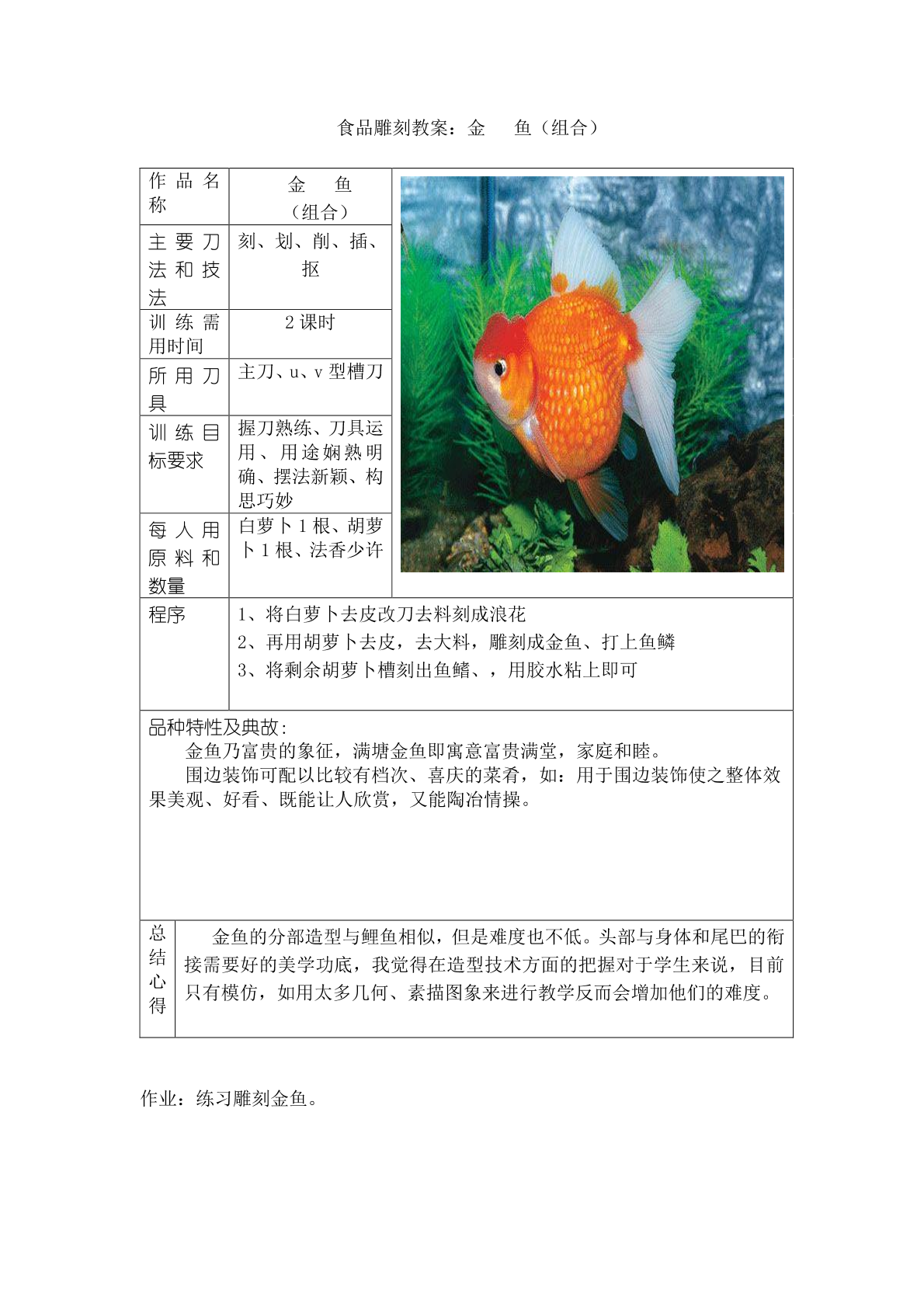 食品雕刻教案:金鱼(组合)