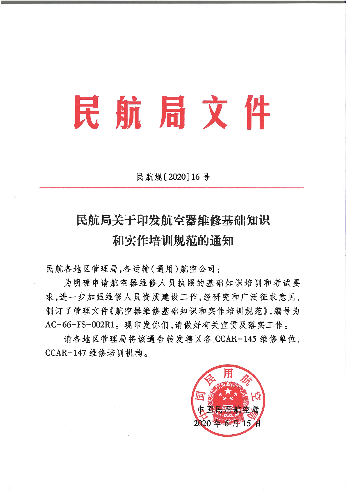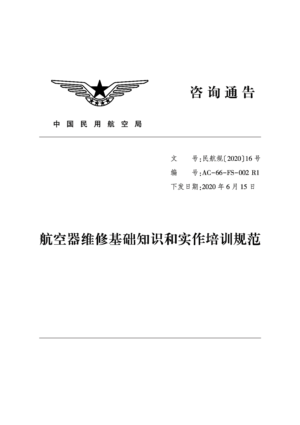 航空器维修基础知识和实作培训规范AC-66-FS-002R1
