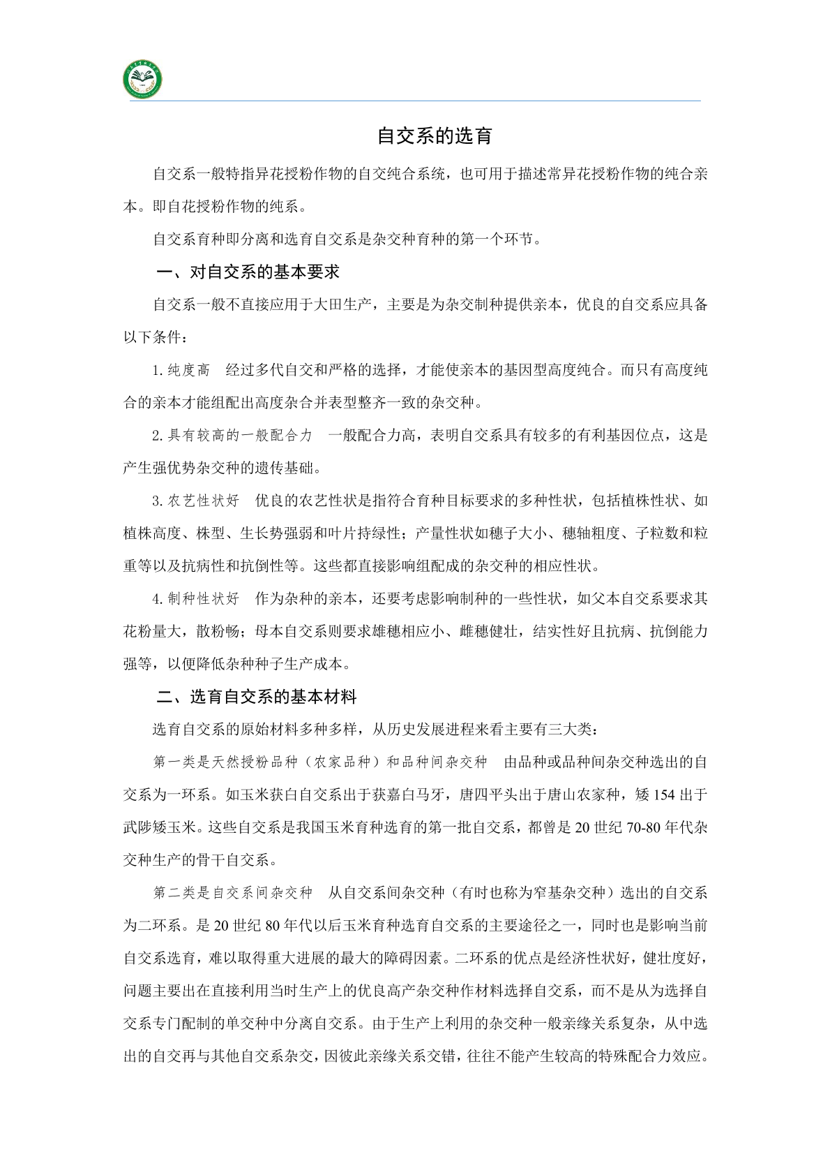 自交系的选育