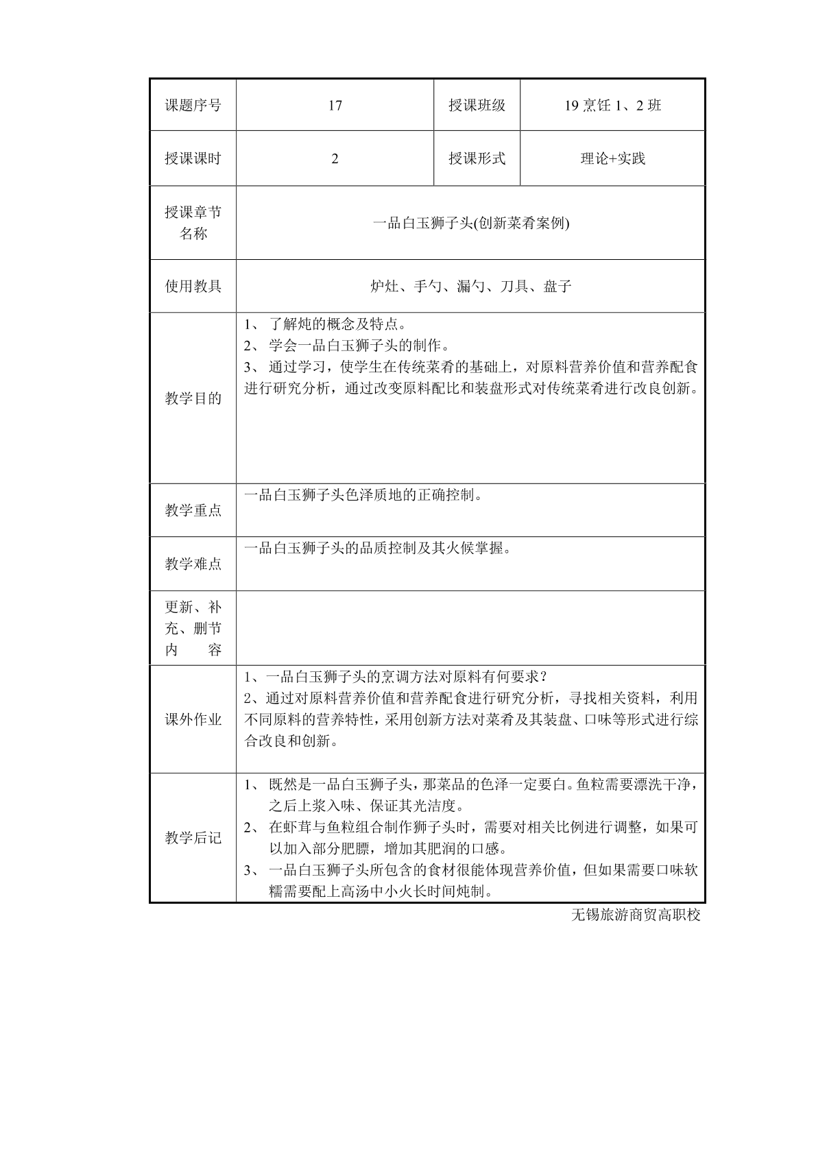 创新热菜——一品白玉狮子头(炖)