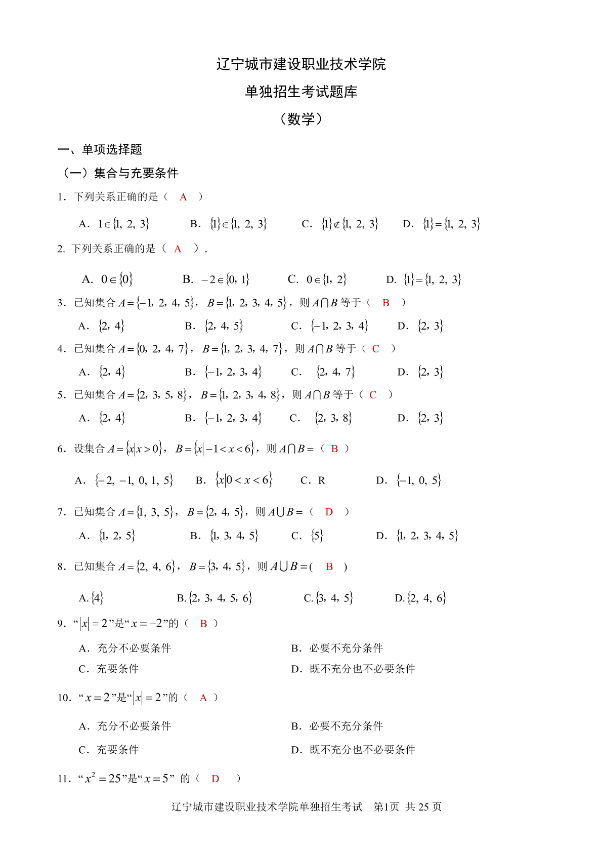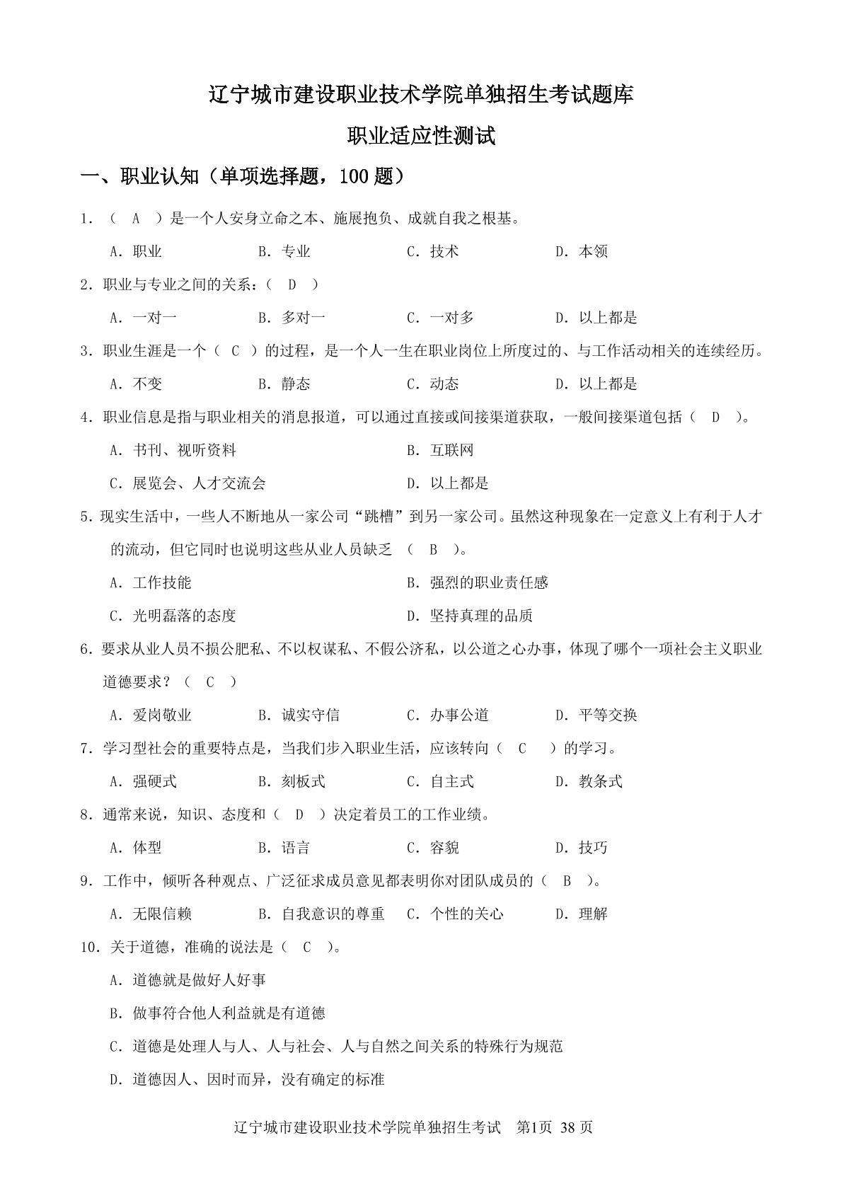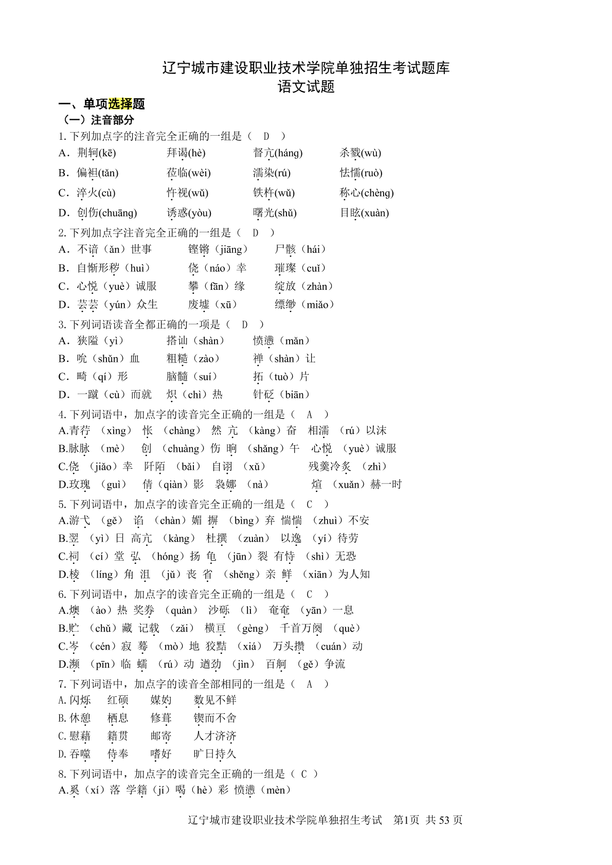 辽宁城市建设职业技术学院单独招生考试题库(语文)