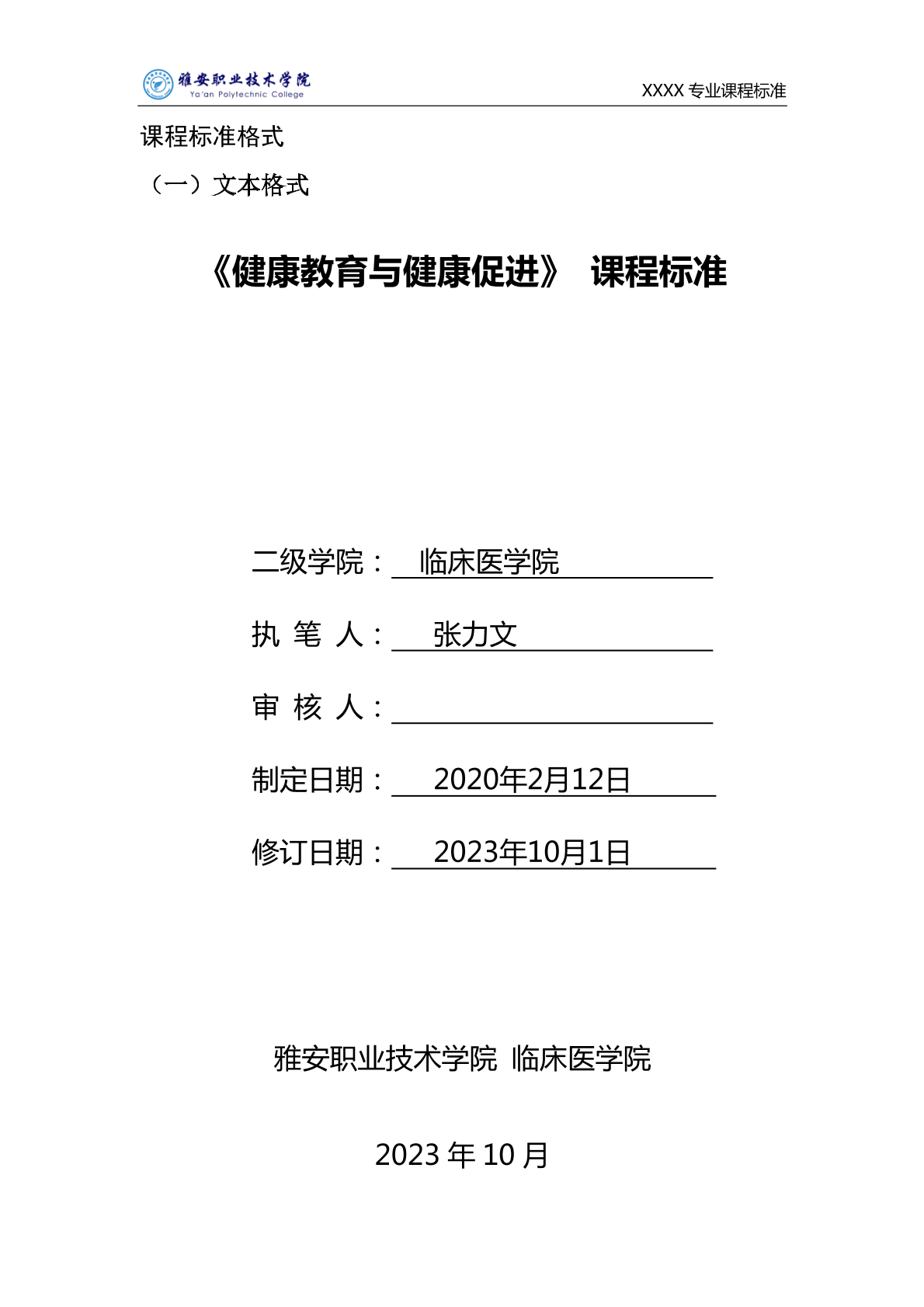 健康评估课程标准