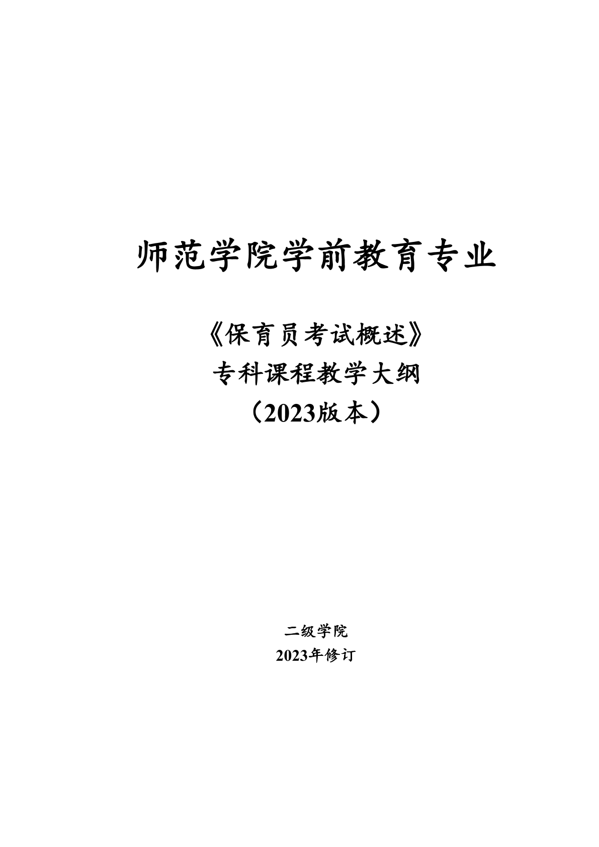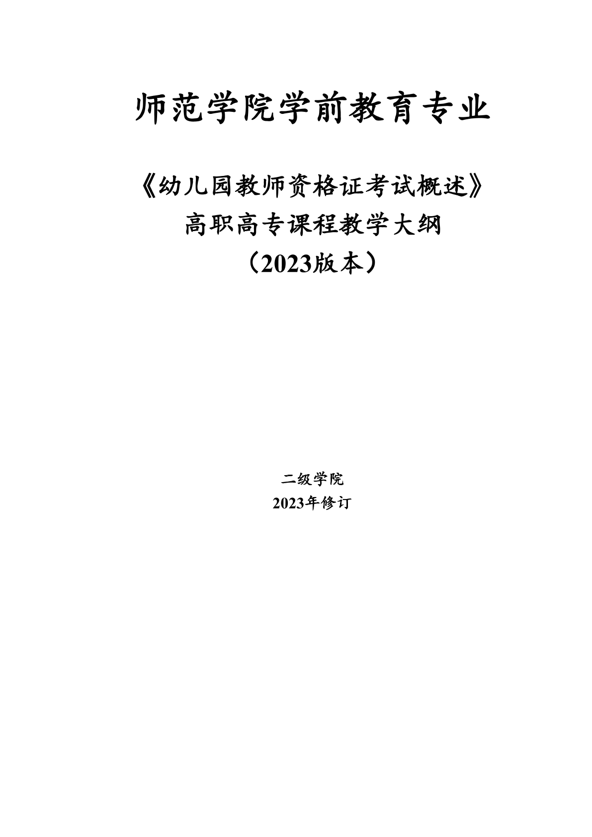 《幼儿园教师资格证考试概述》课程教学大纲(张晓茹)