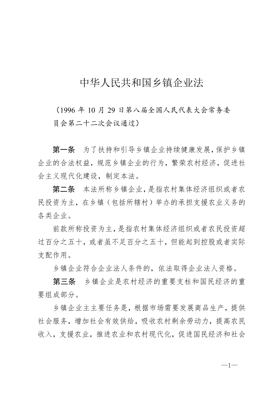 法律法规——中华人民共和国乡镇企业法