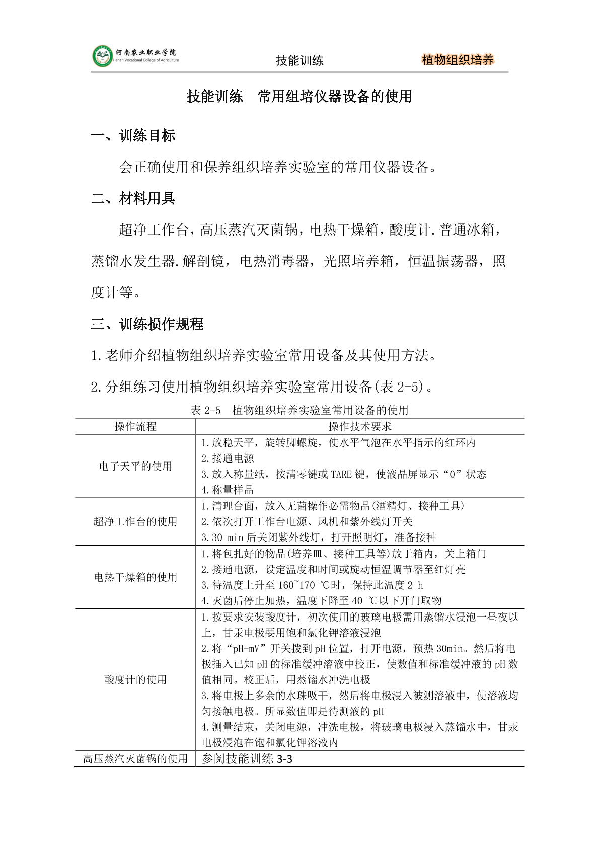 技能训练2-2常用组培仪器设备的使用